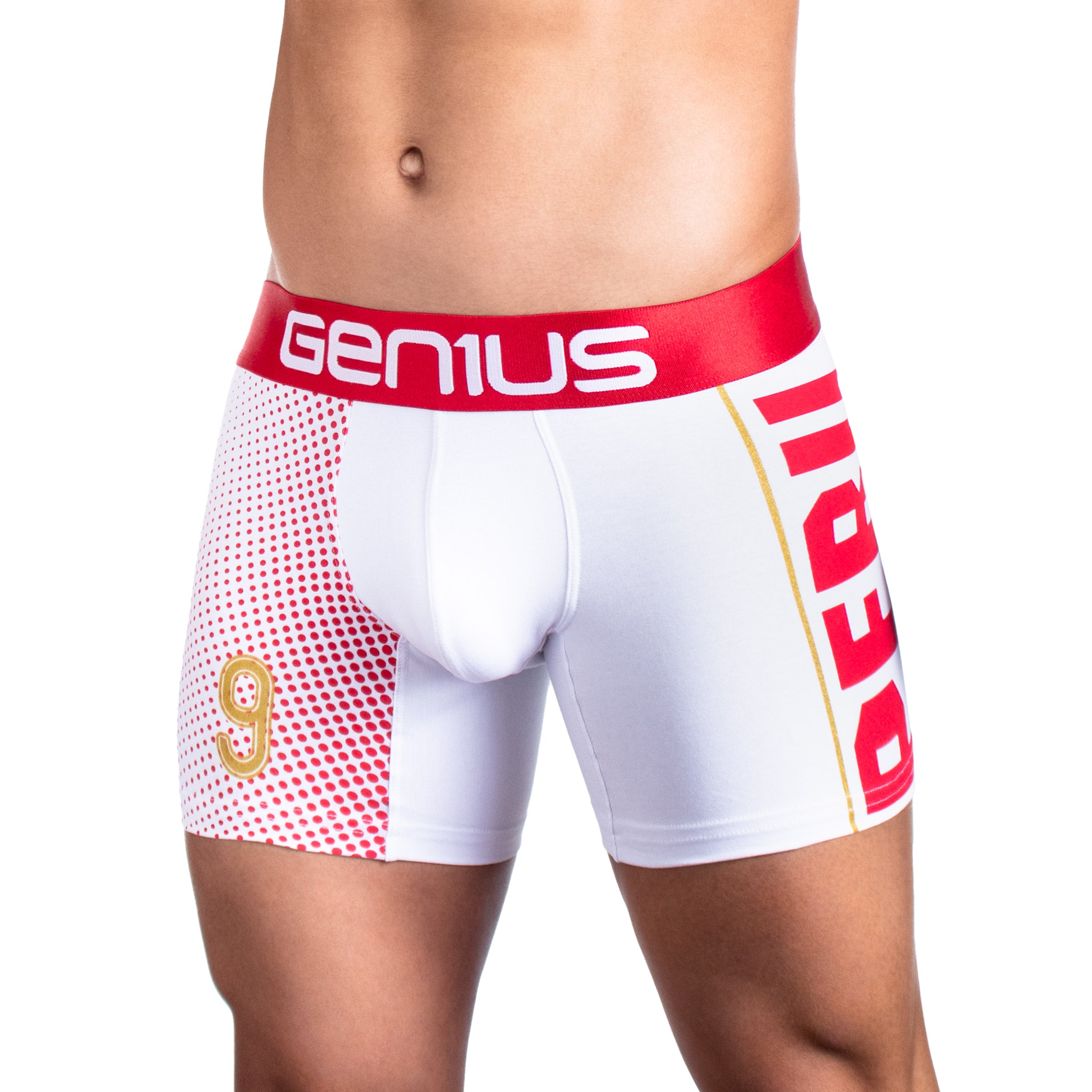 Confeccionado con algodón peruano de alta calidad, ofrece una sensación suave, fresca y un ajuste perfecto. El elástico rojo con el logo Genius asegura firmeza sin apretar, mientras el estampado digital mantiene los colores vibrantes por más tiempo.