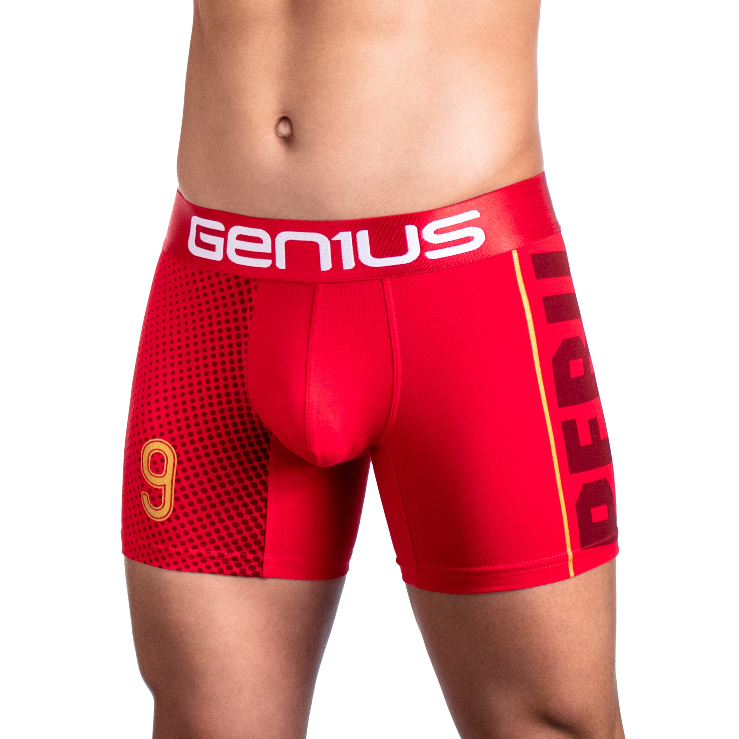 Confeccionado con algodón peruano de alta calidad, este bóxer garantiza comodidad, frescura y libertad de movimiento durante todo el día. El elástico rojo con el logo Genius completa este diseño vibrante pensado para quienes sienten el fútbol desde lo más profundo.