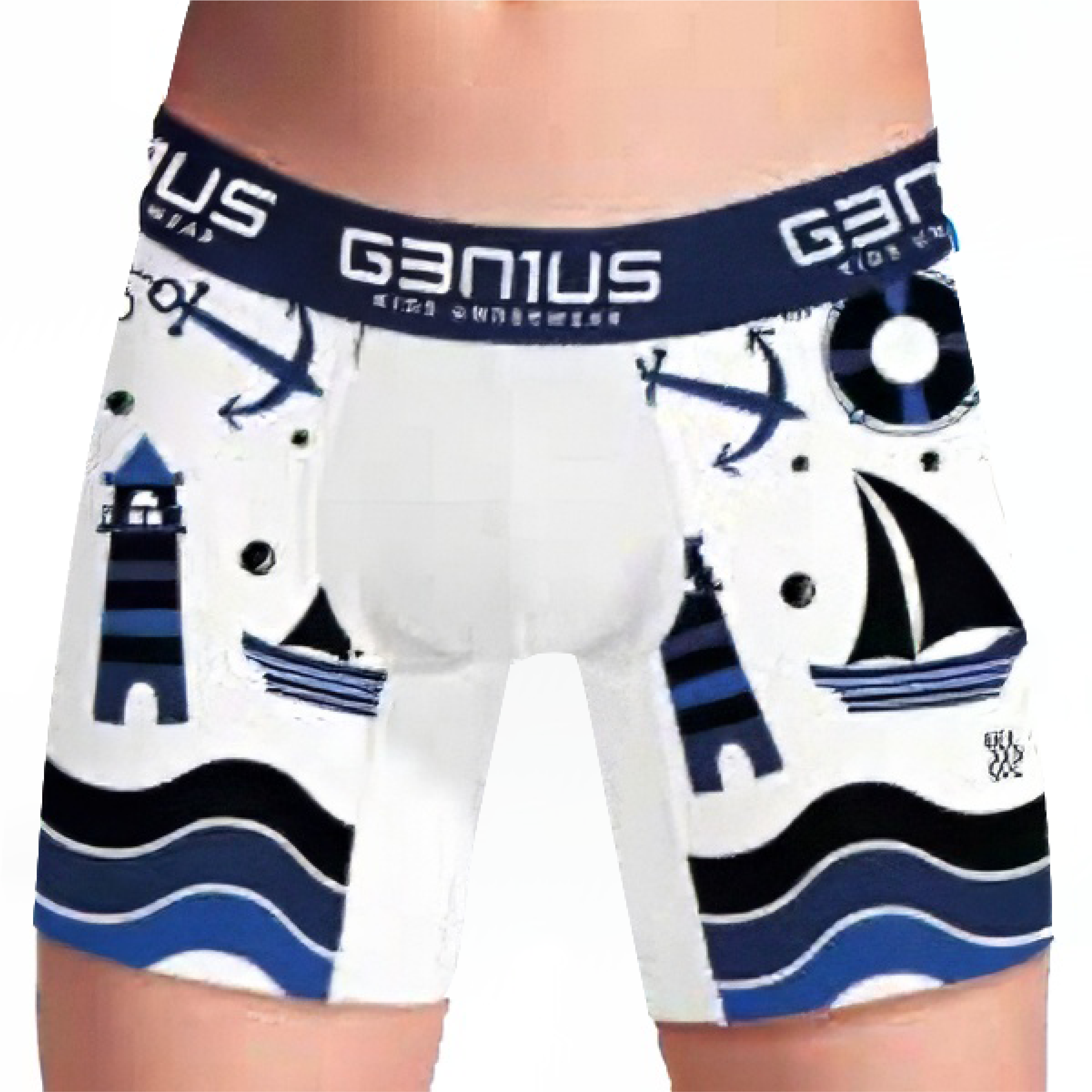Esta colección de bóxers infantiles Genius es ideal para los pequeños exploradores que aman el mar y la aventura. Con un diseño inspirado en la temática náutica, estos bóxers presentan detalles de faros, anclas y veleros, disponibles en cuatro colores: blanco, gris, rojo y azul marino. Fabricados con algodón peruano de alta calidad, garantizan suavidad y comodidad, permitiendo a los niños disfrutar de cada día con estilo.