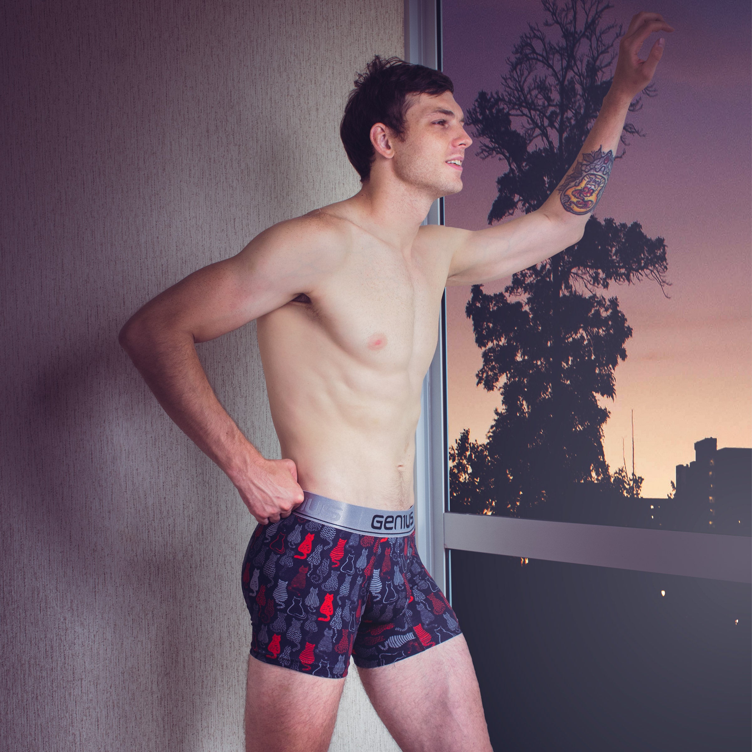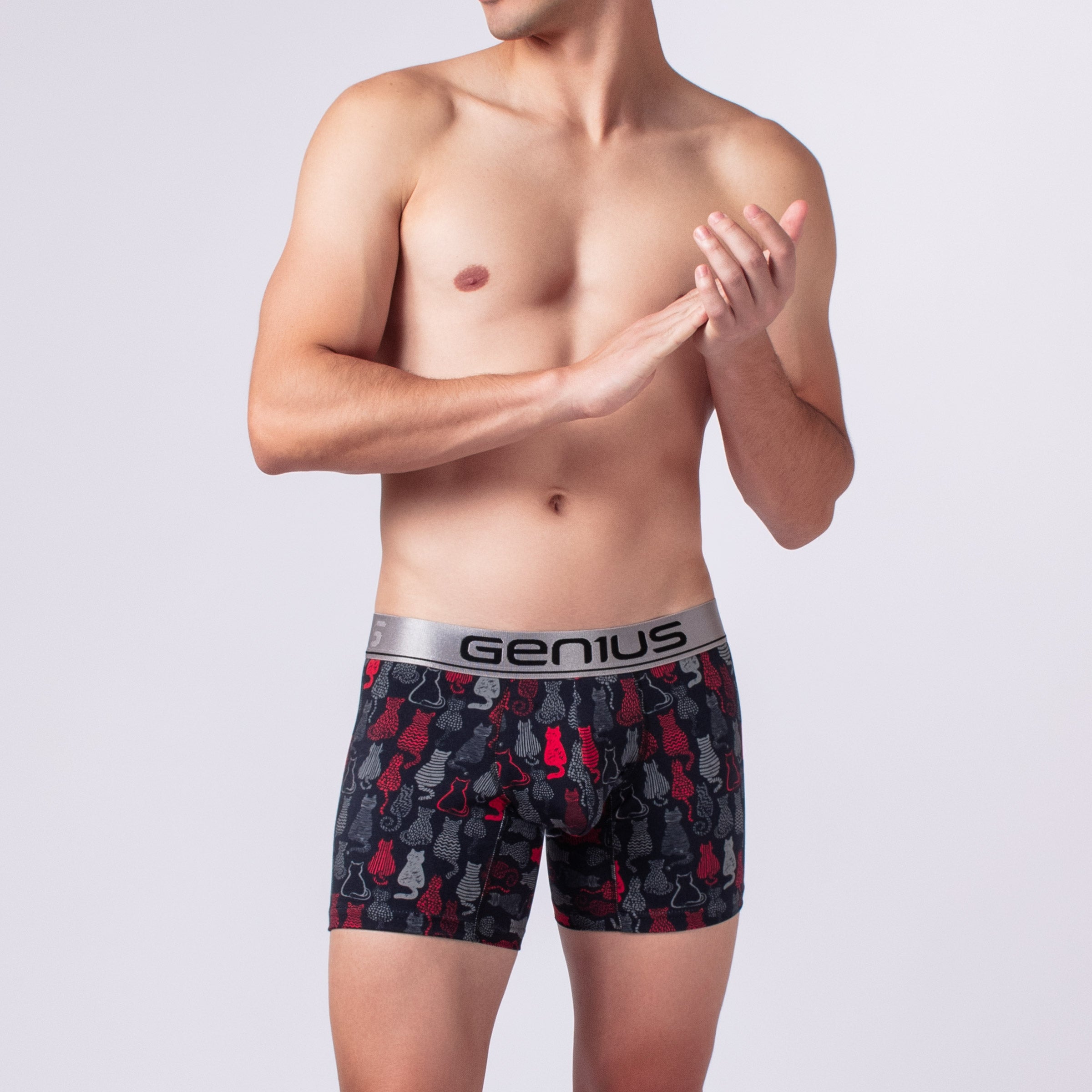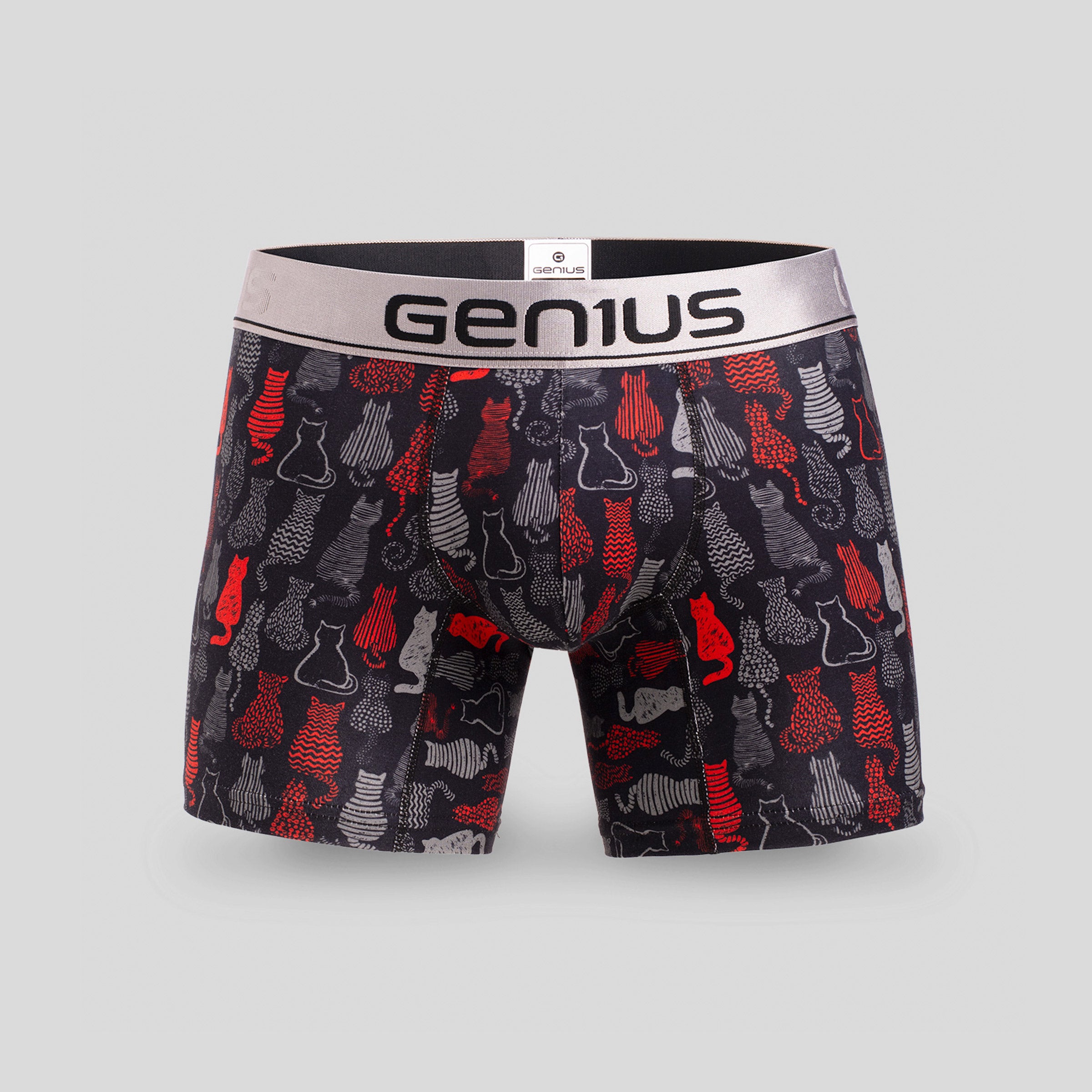 ¿Quién dijo que la ropa interior no podía ser divertida? Meow es el bóxer de Genius que rompe esquemas con un estampado lleno de gatos en diferentes estilos, colores y texturas. Un diseño atrevido, original y con mucha personalidad.