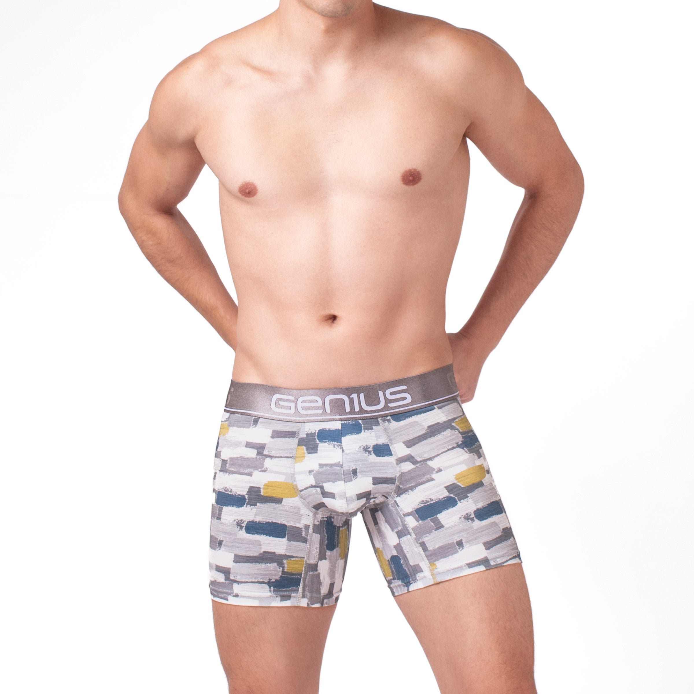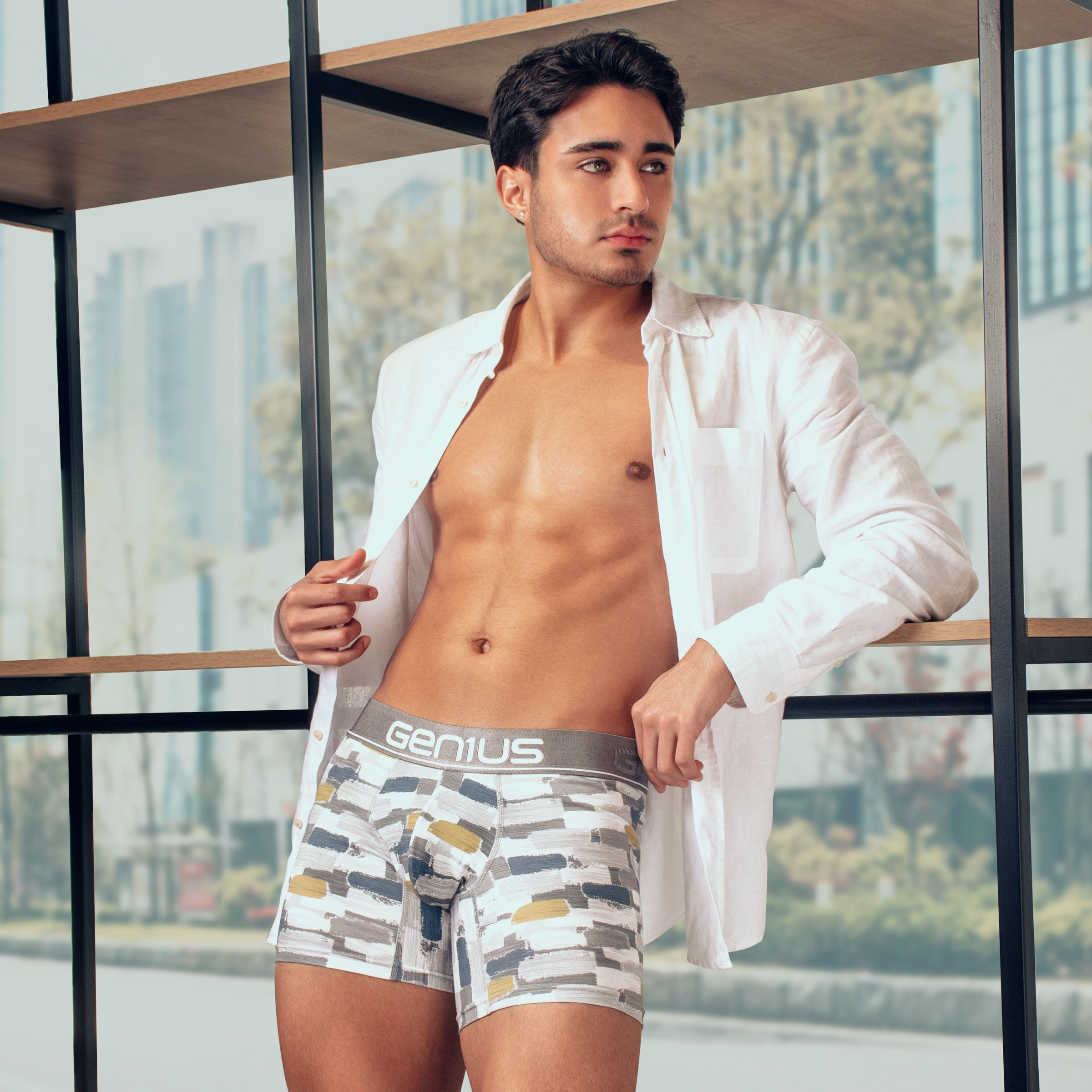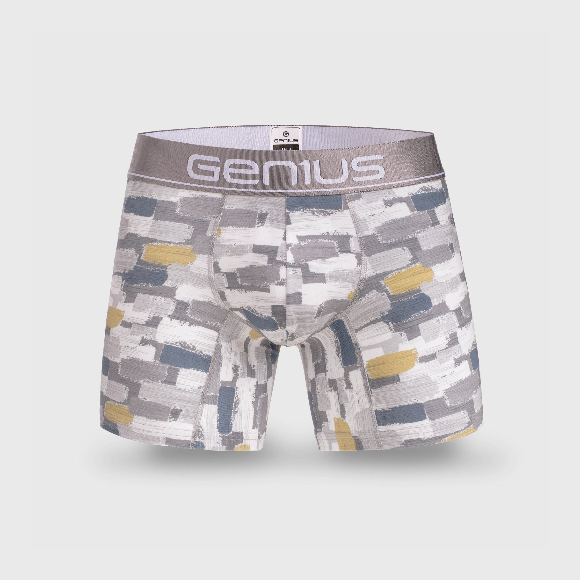 Boxer Óleo de Genius: inspirado en la fuerza del arte abstracto, con estampado tipo pinceladas en tonos modernos. Confeccionado en algodón peruano de alta calidad y con tecnología de estampado digital, ofrece suavidad, frescura y durabilidad en cada uso. Su pretina elástica ultrasuave asegura comodidad sin marcar la piel, mientras que su diseño artístico tipo brochazo convierte lo cotidiano en algo diferente y lleno de carácter.