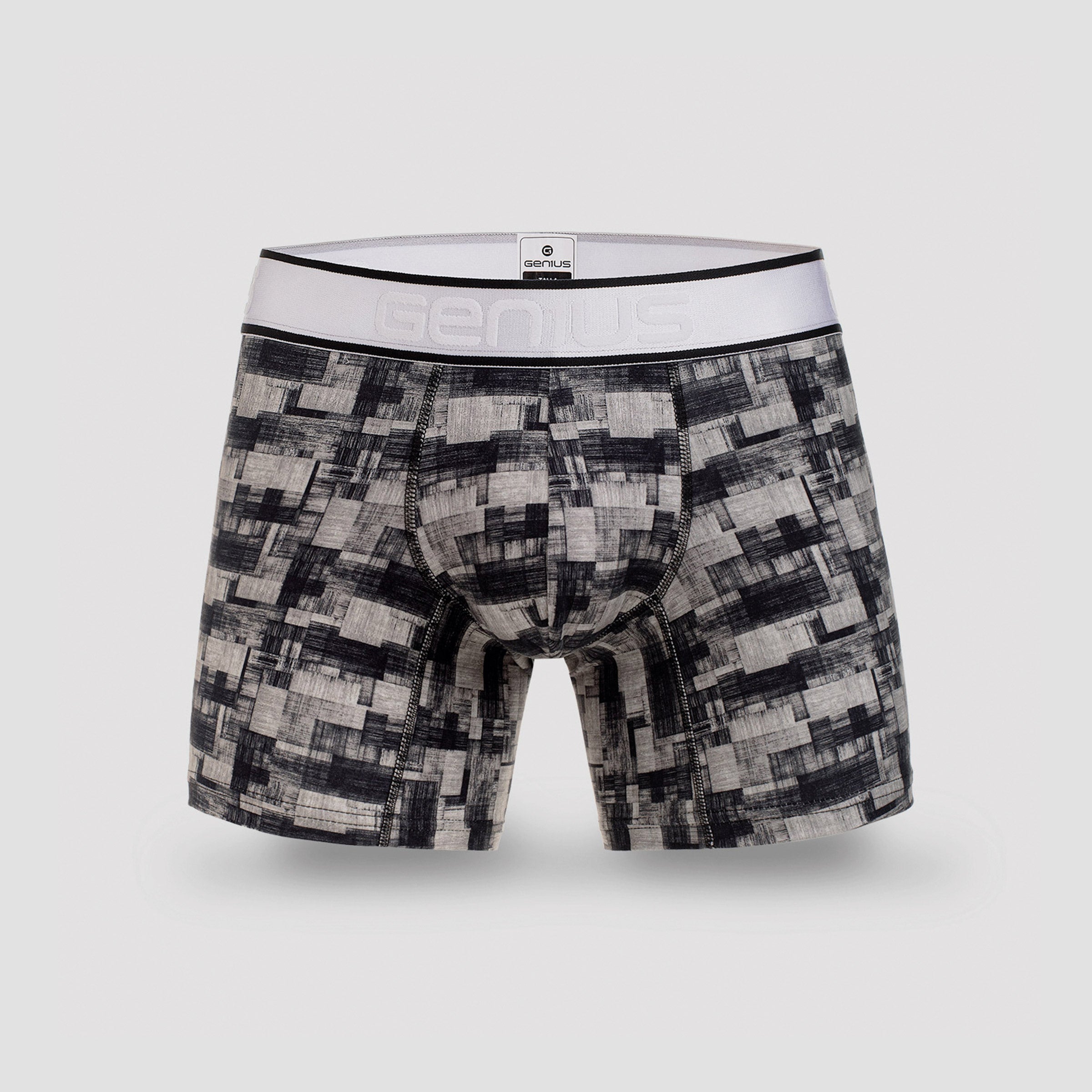 Moderno, audaz y con actitud. El bóxer “Block” presenta un patrón abstracto en escala de grises que combina bloques rectangulares y texturas tipo concreto, creando una estética urbana y sofisticada. Es una prenda pensada para quienes aprecian el diseño moderno y buscan comodidad sin renunciar al estilo.