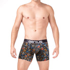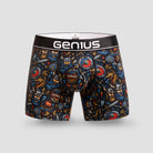 Gracias a su estampado digital de alta definición, cada elemento del diseño mantiene gran nivel de detalle y colores vibrantes que resaltan sobre el fondo oscuro, convirtiendo esta prenda en una opción moderna y llamativa dentro de la ropa interior masculina.