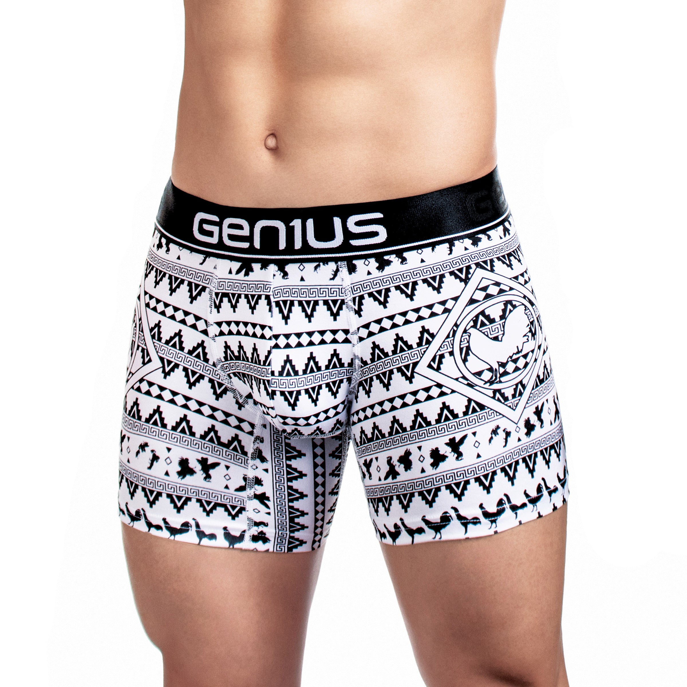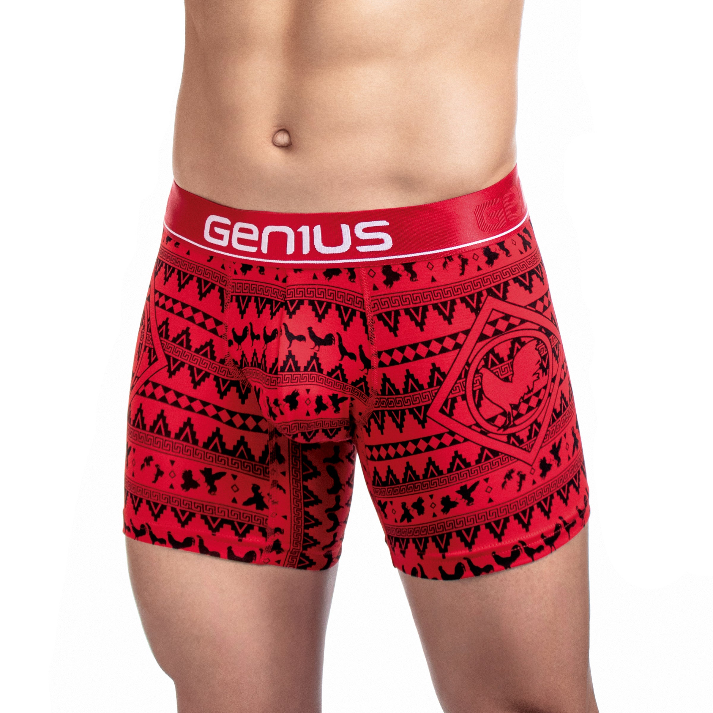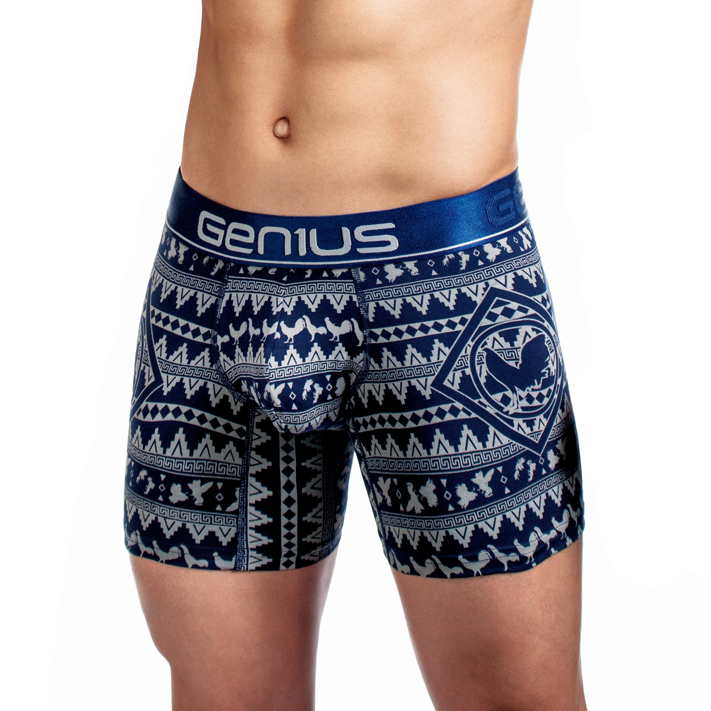 Su estampado digital premium con patrones étnicos geométricos le da un estilo auténtico y llamativo, disponible en una amplia gama de colores como azul, amarillo, negro, blanco, gris y rojo. La pretina elástica ultrasuave con el logo Genius asegura un calce firme sin incomodidad, para que disfrutes de comodidad premium y un look que destaca.